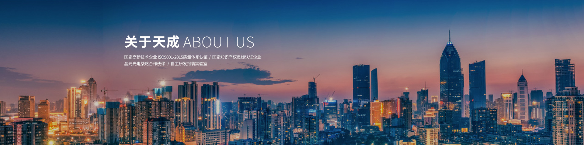 PROFILE天成高科(深圳)有限公司创立于2012年,是一家专业从事高品质SMD贴片型LED灯珠研发、生产和销售的国家高新技术企业,拥有LED独立封装实验室、十万级洁净数字化MES智能车间、三十余项LED封装专利技术,核心研发团队拥有20余年LED封装技术背景;公司通过ISO9001-2015质量体系、美国能源之星LM-80、欧盟EN62471、SGS、MSL-2Aa级、RoHS等认证;公司生产的户外景观亮化系列、功能型幻彩系列产品被广泛应用于杭州G20峰会、厦门金砖五国峰会、内蒙古自治区70周年、深圳市市民广场灯光秀等大型亮化工程项目上等户外、室内领域;公司引进新加坡ASM、日本KAIJO-E18等硬核高精尖生产设备,与美国科锐Cree、台湾晶元Epistar、厦门三安Sanan等知名芯片厂家达成战略合作伙伴关系,是LED封装行业内的领头羊。 公司先后被中国产品质量保障机构评为:“中国质量承诺,诚信经营企业(品牌)”,“2016年度有责任感企业”,中国照明学会:“发展潜力奖”,连续三年被深圳市市场监督管理局评为:“广东省重合同守信用企业”, 深圳市照明与显示工程行业协会:前海湾照明工程奖“年度十大创新产品”,深圳市半导体发展促进会“2019半导体封装企业”等。